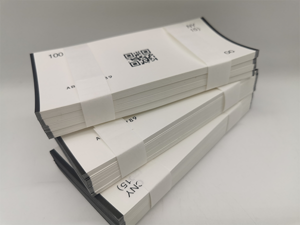● 安(ān)全線(xiàn)纸:指造纸过程中(zhōng)将一条金線(xiàn)或塑胶線(xiàn)置于纸张中(zhōng)间。较早使用(yòng)的是特制金属線(xiàn),现在使用(yòng)聚酯类塑胶線(xiàn)、微型字母安(ān)全線(xiàn)、荧光安(ān)全線(xiàn)、磁性線(xiàn)等。