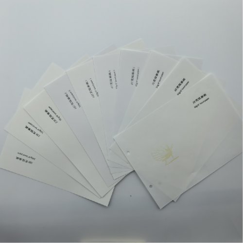 (01) | 幻彩荧光印刷 | (21) | 100g黑菊花(huā)纸 | (41) | 140g線(xiàn)加熊猫纸 |