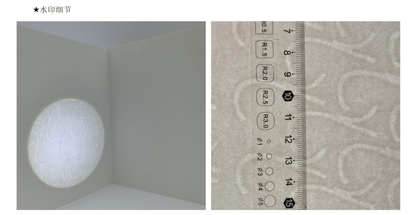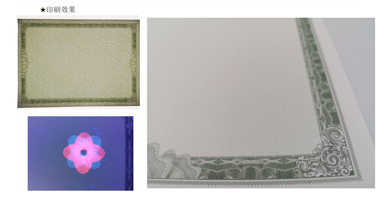 水印纸:水印纸是有(yǒu)浮雕、可(kě)触摸图像、条码等的纸张。钞票用(yòng)的便是水印防伪技(jì )术。因水印不能(néng)用(yòng)影印机、扫描器等再现,故其防伪效果甚受重视。