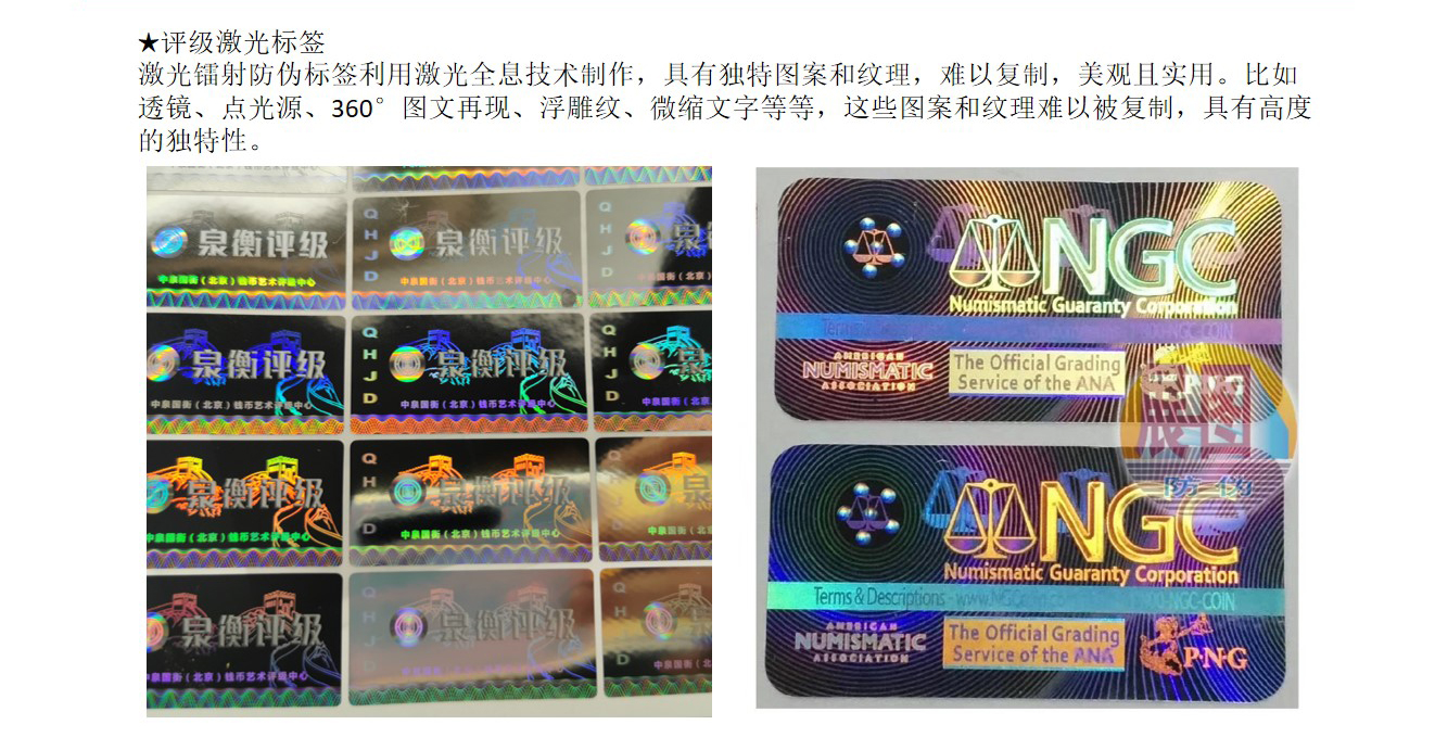 评级标签是利用(yòng)数字、油墨、物(wù)理(lǐ)、光學(xué)、纸张、生物(wù)等防伪技(jì )术制作(zuò)的标签。