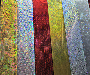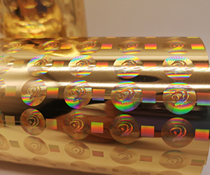 烫印膜是指将激光全息電(diàn)化铝膜与烫印技(jì )术相结合,在印刷品表面形成绚丽多(duō)彩的激光全息标识和立體(tǐ)图案的防伪标识的技(jì )术。