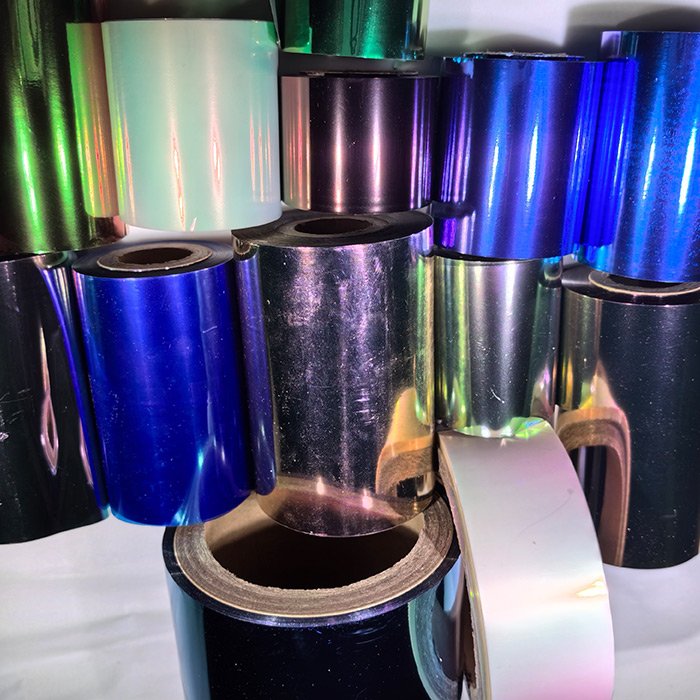 光变烫印膜:正侧角度颜色不一样,可(kě)满足更高防伪要求。